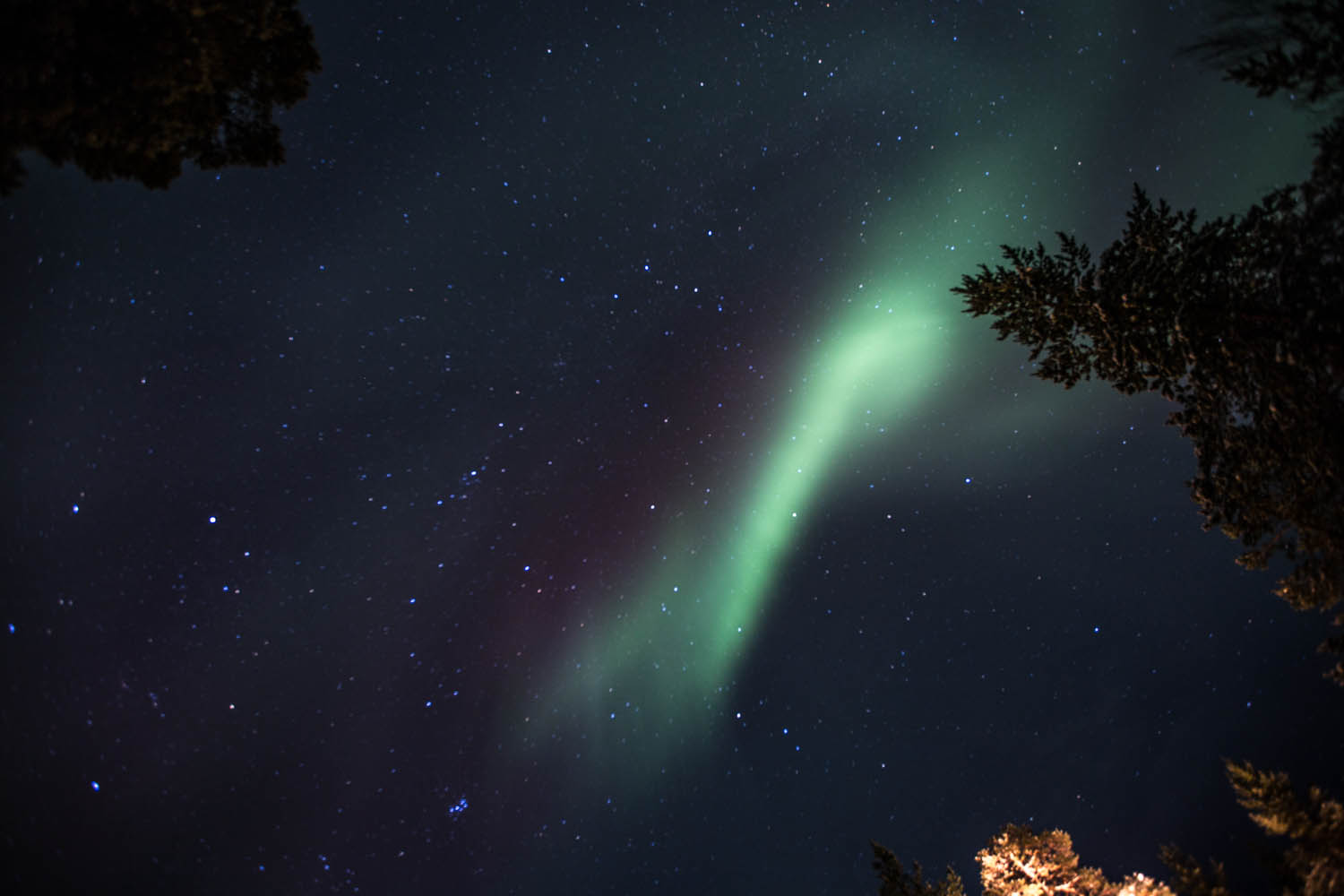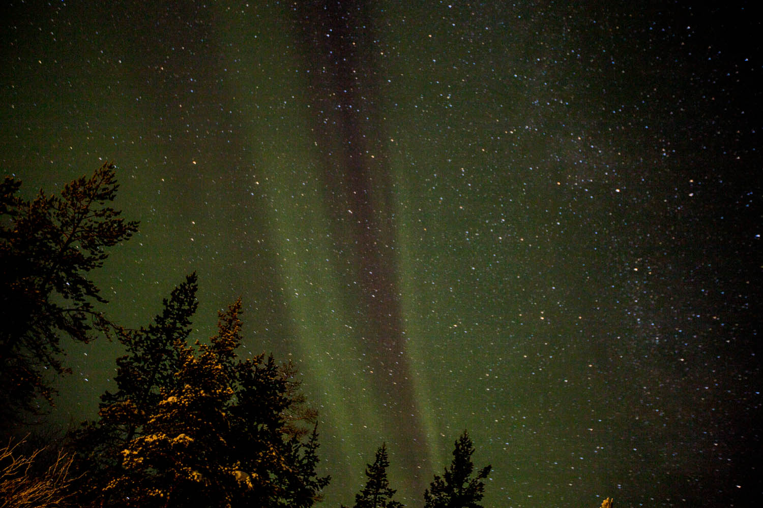 Tästä seuraavasta kuvasta Juniori, joka on erikoistunut yö-, revontuli-, timelapse-, tähtitaivas-, linnunratakuvaukseen, sanoi, että tuossa minunkin kuvassani näkyy linnunrata: tuossa revontulten oikealla puolella, tiheä tähtiketju. Enpä ennen ole Milky Waytä onnistunut valottamaan, – nytkin vahingossa.