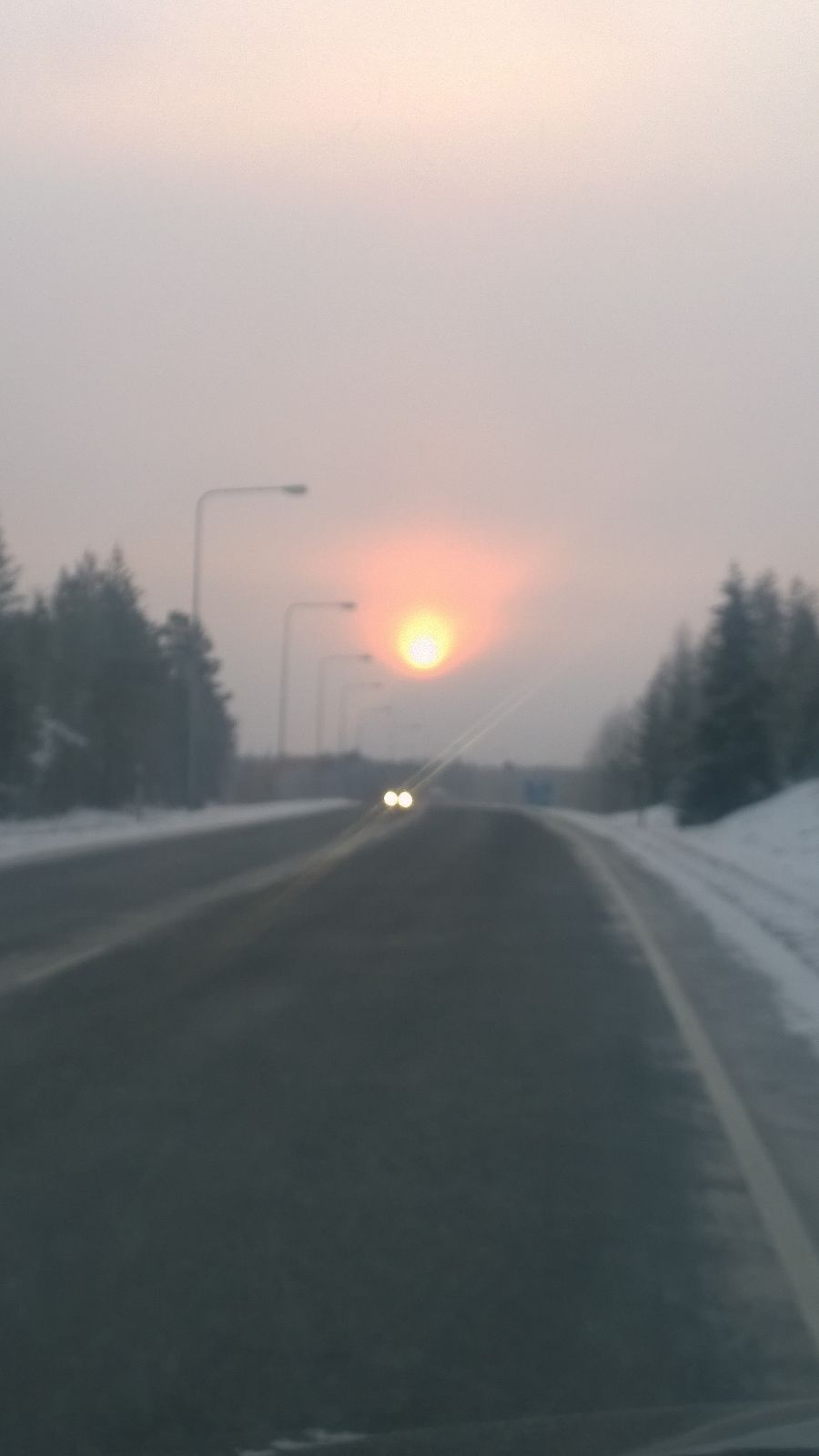 Matkalla harvinainen valoilmiö! Aurinko! Kännykuvan matkalta otin.