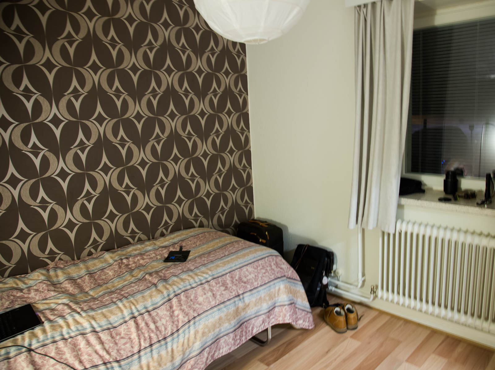 2. Eikös vain ole komeat tapetit! Hyvä siellä oli nukkua, ja toinen yö oli yhtä hiljainen kuin mökillä Hangasojan varrella. 😉