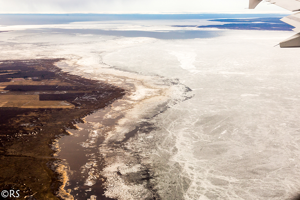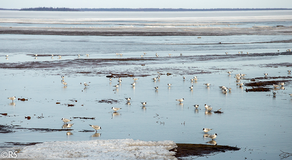 Meri on rannasta jo sula, mutta eilen koneestakin näkyi, että ulapalla on vielä jääkansi. Niinpä ilma on kovin vilpoinen vielä, näin tuulisella säällä varsinkin.