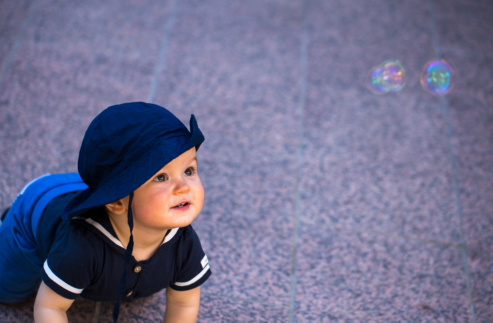 Olisi kyllä kannattanut tänään vähän enemmän suunnitella niin olisi saanut paremmat kuvat kuin missään studiossa ikinä. Oltiin pihalla, ja Aapeli sai eka kertaa olla nurmikolla ja näki eka kertaa saippuakuplia. Voi sitä riemun määrää!