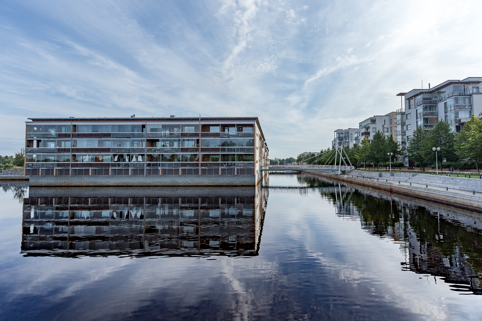 Samoin kuin eilisen aamun urbaanimaisemien kuvat. Olin eilen aamulla ennen seitsemää kaupungilla, ajelin autolla Tähtitornin kahvilan parkkiin, ja kävelin sen jälkeen pari tuntia Oulun keskustaa ristiin rastiin. Canon ja muutama linssi laukussa mukana. Olipas ensimmäisen Qstock-illan ja yön jälkeen aika karua katseltavaa: paitsi että Kuusisaaren, Pikisaaren, Torinrannan tienoot olivat ihan hillittömän roskauksen jälkeen karmean näköisiä, oli puistoissa hylättyjä pyöriä, unohdettuja takkeja, mutta myös kolme uuvahtanutta rokkaajaa nukkumassa, nuoria miehiä kaikki. Mikäs siinä, lämmin aamukin … Minulla olisi kuvia aika surkeista näkymistä, mutta oli aamussa paljon kaunistakin Oulua.