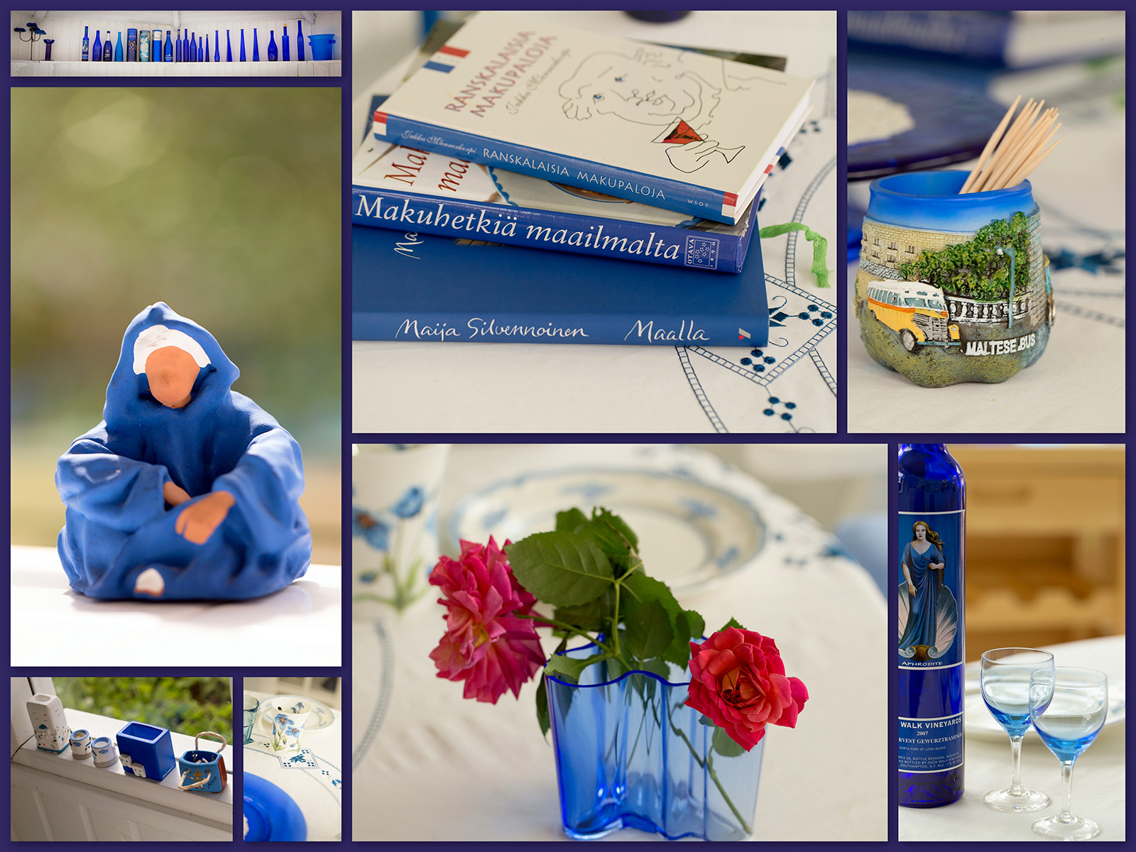 Yksi menossa oleva kuvahaaste on ”sininen”. Otin lauantaina jo eräänkin kuvan meidän Huvilasta, aikeena käyttää niitä, mutta eipä ne oikein sovi lisämääreen ”Art” alle. Teinpä niistä kollaasin (klikkaa isommaksi). Tiedättehän Olavi Virran Sininen Huvimaja -tangon. ..