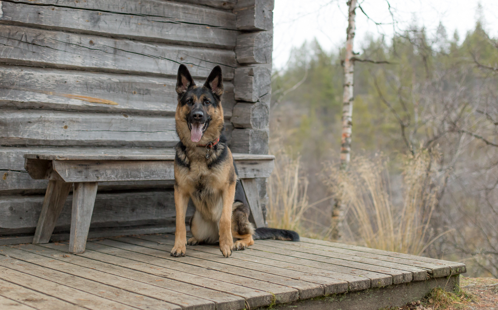 Tässä vielä kuva Piinasta Kummituskämpän edessä. Piina on pikkuperheen nuorin koira. Maisa ei enää jaksa Lappiin tulla, ja Unski ei ulkoile, vaan nukkuu Tuulentuvassa … Unskin vaellusvuodet ovat jo ohi.