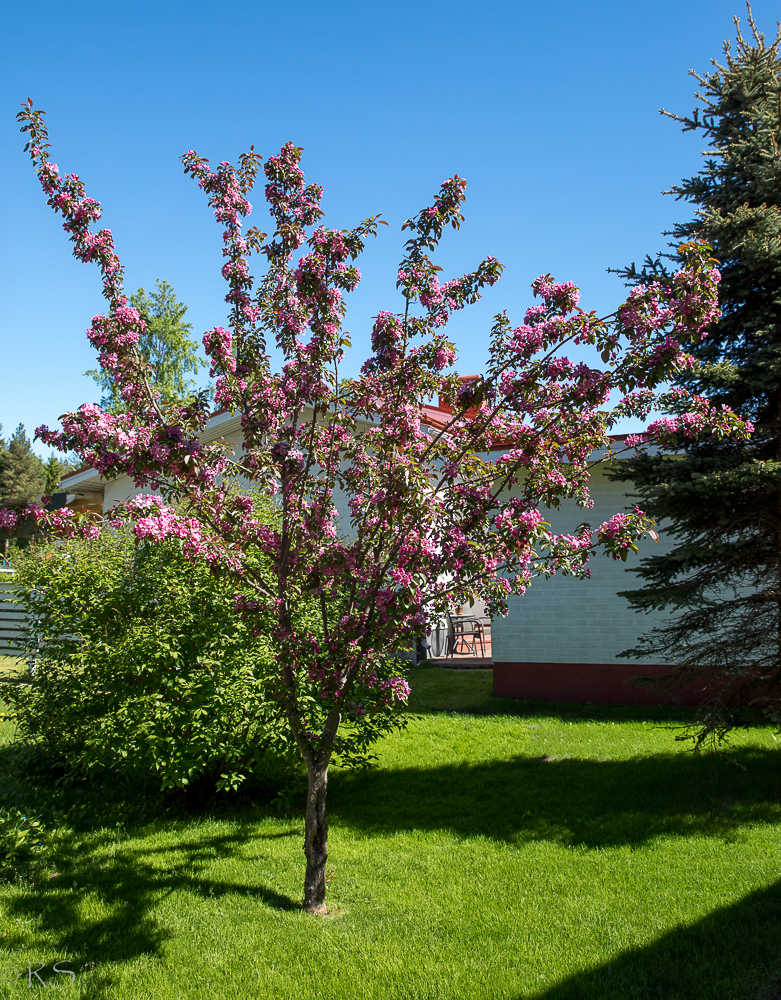 Ihailin ja kuvailin puita, ja reilun puolen tunnin päästä saatuani viestin Pehtoorilta tiesin, että reittimme alas ja patikoinnin jatkamisen kannalta olivat erkaantuneet. Osasin sentään yksin palata mökille. Minähän en ole niin kauhean hyvä suuntavaistoni kanssa. 🙂