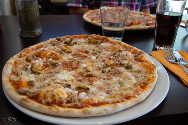 Pizzeria oli siisti ja pizzojen pohjat ohuita ja täytteitä sopivasti, mutta molemmat oltiin sitä mieltä, että eivät pizzat oikein maistuneet miltään. Jos olisi sokkona maistanut, ei olisi tiennyt syökö Frutti di Marea vai Operaa vai mitä. Mutta ei ne huonojakaan. Ehkä tämä voidaan lukea meidän etninen ravintola testauksiin, sen verran murtaen sekä tarjoilija että pizzanpaistaja suomen kieltä puhuivat. 😉