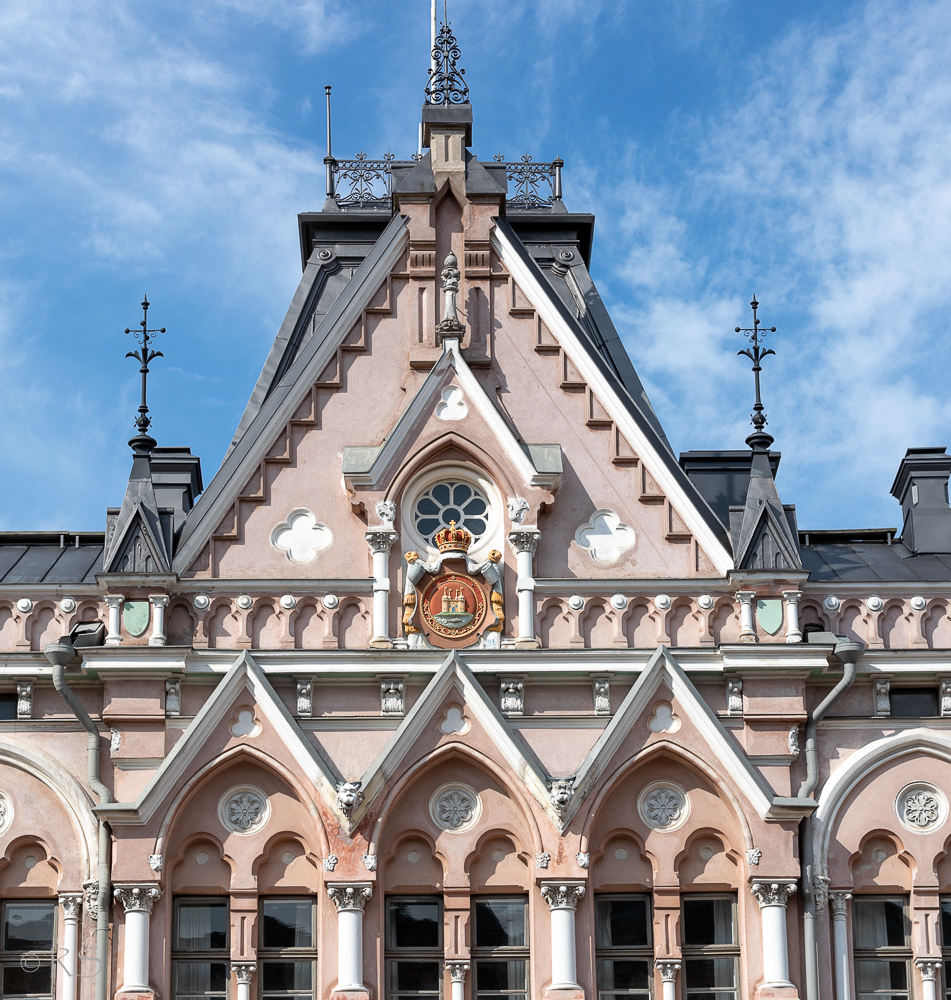 Ja vanhan kaupungintalon (alunperin kauppias Granbergin talon) fasadissa on komea vaakuna, josta uudella (keväällä ostetulla) objektiivilla ylsin ottamaan lähikuvan.