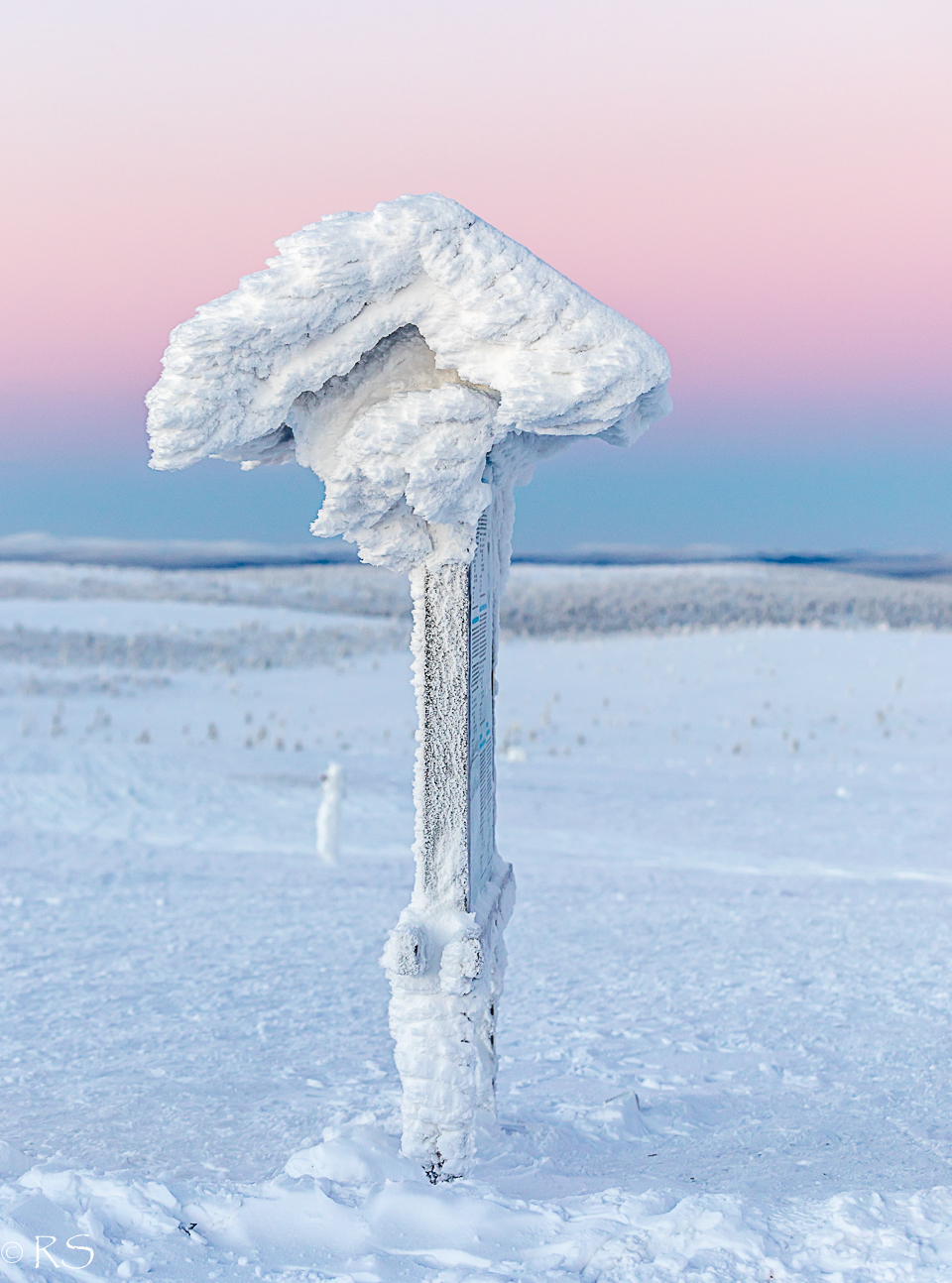 Pakkasta on ollut: täällä mökin pihapiirissä parikymmentä astetta pakkasta melkein koko päivän ja illan. Kylillä ja Kaunispään huipulla sen – 12 – 15 C. Oli ilo liikkua ja kulkea. Emmekä suinkaan olleet ainoat; Saariselän keskustan raitilla paljon turisteja. Brittejä, kiinalaisia, venäläisiä.