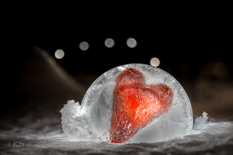Nyt on ”sydämiä syrjällään” ja ”tunteet pakastettu” ja kauniisti koristavat lomista pihaa. Kuvauksiin laittelin vielä taskulampu taustalle ja valonauhoja bokehin aikaansaamiseksi.