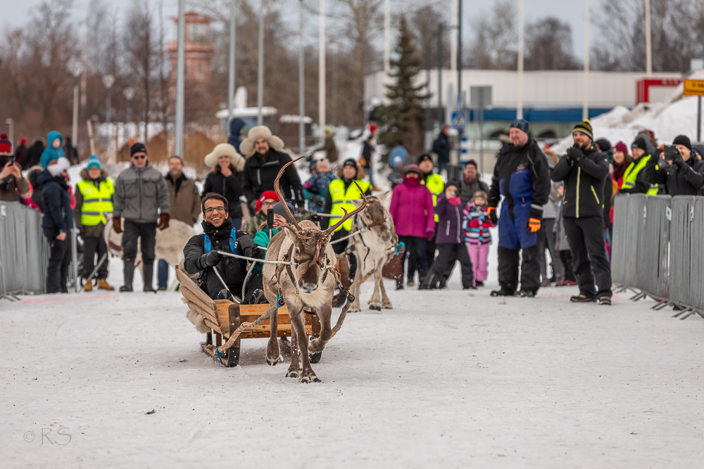 Me kävimme vielä katselemassa Poroferian jokkiskisat: porojen kanssa kilpa-ajelua. Jo kolmannen kerran peräkkäin sama voittaja (kuvassa).