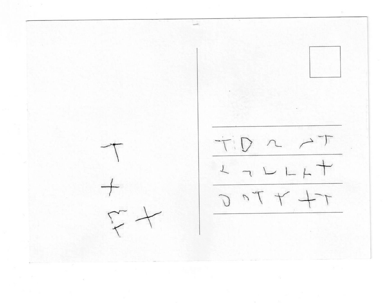 Jollet hyvästä käsialasta huolimatta saa selvää, niin siinä lukee ”Mummi ja pappa. Rantapelto. toivoo Aatu.”  Etupuolella on kuva, jossa lukee ”kiitos että olet ystävä”.   Aika liikkis, eikö?