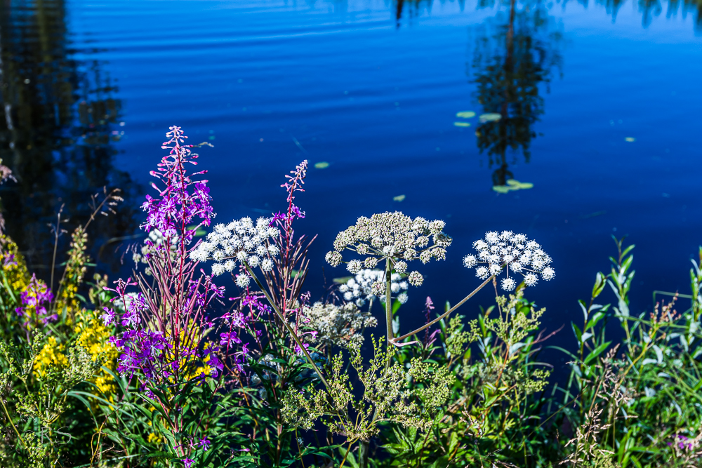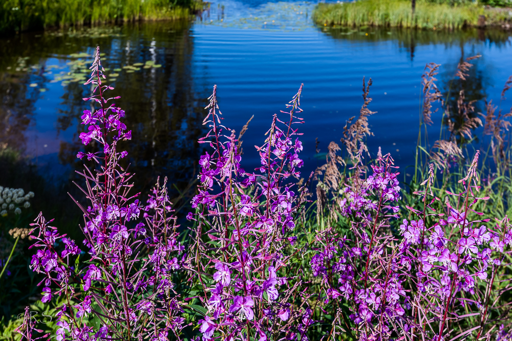 Oli kuvattava jopa horsmia, jotka itseasiassa olivat oikeinkin kauniita joen syvänsinistä väriä vasten.