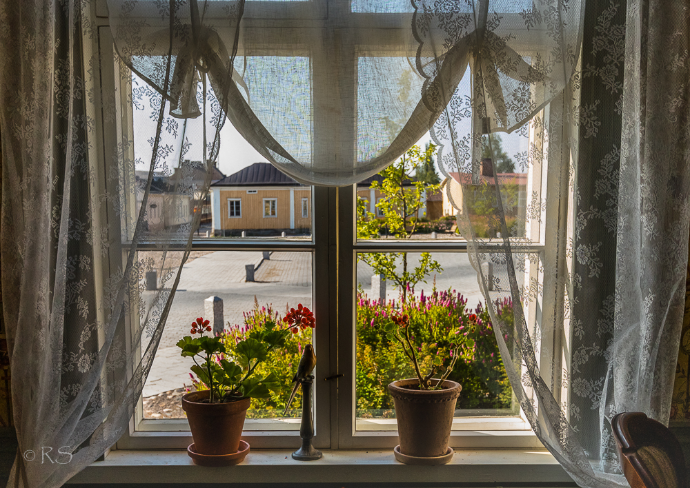 Verhojuttuja mietin. Ei en aio pitsiverhoja laitella. Kuva on Langin Kauppahuoneen ikkunasta Pekkatorille. Eli viikon takaisen reissun kuvasaalista, joten olen tänään ”kehittänyt” ja toimitellut eteenpäin. Mutta tähän työhuoneeseeni haluaisin vaihtaa verhot. Nuo nykyiset ovat olleet kai sen kymmenen vuotta, ja vaikka ne on monen mielestä aika hienot, ne eivät ole koskaan olleet ihan minun makuuni. No itseä voin vain syyttää… Ihan itse valinnut kankaat ja tilannut ompelun ja ostanut. Mutta nyt haluaisin vaihtaa.