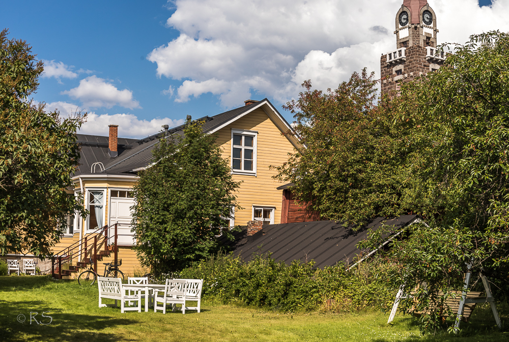Viime kesänä Vanhaan Raaheen, Pekkatorin nurkalle, avattiin Langin Kauppahuone lounaskahvila, jonka yhteydessä on B & B -majoitusta, ja sinne minä halusin kesän ”Suuren Pyöräturneeni” suunnata. Edellinen, minulle aina silloin tällöin tarpeellinen, pari päivää yksinoloa on jossain kaukana menneessä (Pehtoori mökillä – minä kotona? tms.). Raahe siksi, että arvelin sinne jaksavani polkea, ja siksi, että siellä on hieno – valokuvauksellinen!! – vanha kaupunki, (Porvoo, Naantali, Rauma, Hanko etc.  onhan näitä, mutta ne eivät ole parin päivän lähimatkailun ulottuvilla). Kemi ja varsinkin Tornio (sattuneesta syystä 😉 ) on tullut kuvatuksi – mutta Raahe ei.