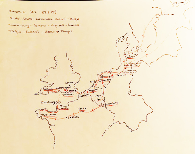 Kesällä 1979 olimme seurustelleet kolmisen vuotta, kun olimme lähdössä kolmatta kertaa Eurooppaan telttaretkelle. Silloin olimme molemmat opiskelleet vuoden, Pehtoori (22 v.) tekulla ja minä (21 v.) yliopistolla, olimme molemmat tehneet  vapusta asti rutkasti töitä ja elokuu oli tarkoitus reissata Englannissa, Ranskassa, Alankomaissa. Ennen matkalle lähtöä poikaystäväni tuli kysäisseeksi (lue: kosineeksi), jotta mites jos mentäisiin reissussa kihloihin? – Enhän minä – noin äkikseltään 🙂 – ollut sellaista tullut pohtineeksi ja sanoin, että ehditäänhän tuota, en minä vielä taida…