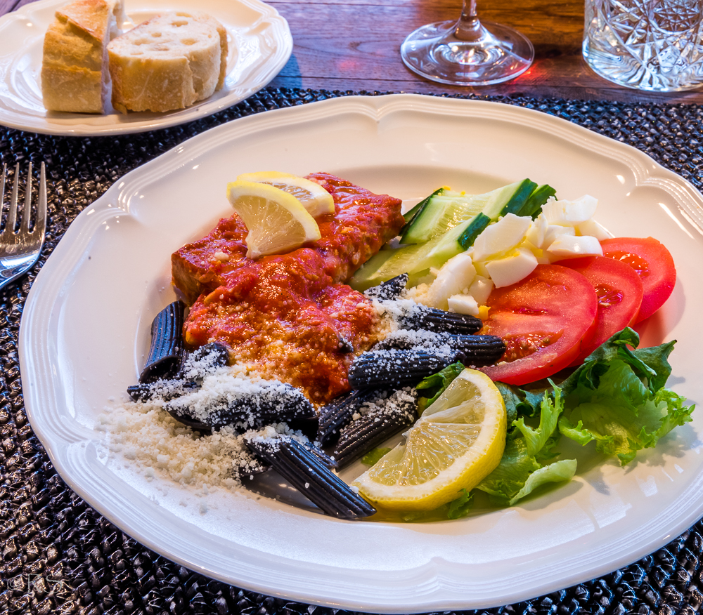 Joka tapauksessa… Tänään meillä taas kalaa. Madeiralla söimme 6/7 päivänä kalaa. Kotona syömme yleensä 2-3/7 päivänä kalaa, 2/7 päivänä lihaa, ja loput päivät menevät kasvis-sieni-juusto-kananmuna -menuilla (kiitetty ja kirottu olkoon juusto! 😉 ) . Tänään pienten tonnikalapihvien ohessa mustekalapastaa, ja ylivertaisen hyvää pecorino-raastetta. Hurjan täyteläisiä makuja olivat. (Mustekala-pennet sopivat hyvin tonnikalan kaveriksi…)