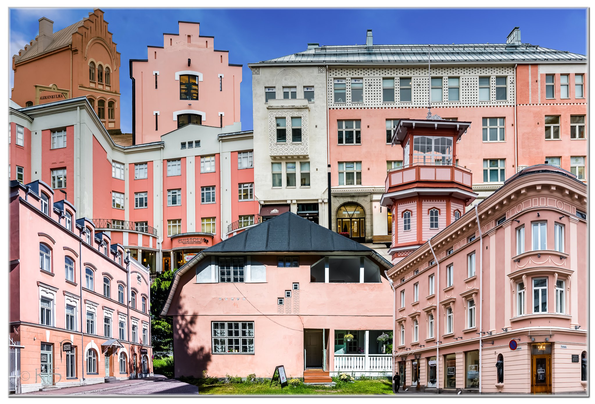 Yhtäkkiä minä (ystävänpäivän kaupallistamisesta vuosikausia tupissut) hoksasin alkuviikosta heti Radisson Blu -kuvapaketin valmistuttua, että nyt jos koskaan on hieno mahdollisuus markkinoida minun ”Oulun vanhat kauniit rakennukset” -projektiani, ja tehdä Oulun vaaleanpunertavista rakennuksista kortti, ystävänpäiväkortti. Ei muuta kuin vanhoja kuvia leikepöydälle ja toissapäivänä vielä muutama täydennyskuvaus, ja voila! Ystävänpäiväkortti vaaleanpunaisesta Oulusta alkoi hahmottua. Hillitöntä säätämistä ja työstämistä ja eilen illalla olin valmis sen julkaisemaan.