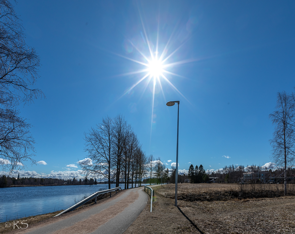 Vesi ja aurinko korkealla. Lempparireitilläni Oulujokivarressa poljin jo melkein lämpimässä säässä (+7 C, joskin tuulta tänäänkin). Pyörällä myös apteekki- ja kauppa-asiat systerille. Nyt on ensimmäiset 500 kilometriä tälle keväälle on tullut jo sykkelin mittariin. Kyllä vielä siis maistuu pyöräily, – paljon paremmin kuin kuntosalilla kulkeminen. 🙂