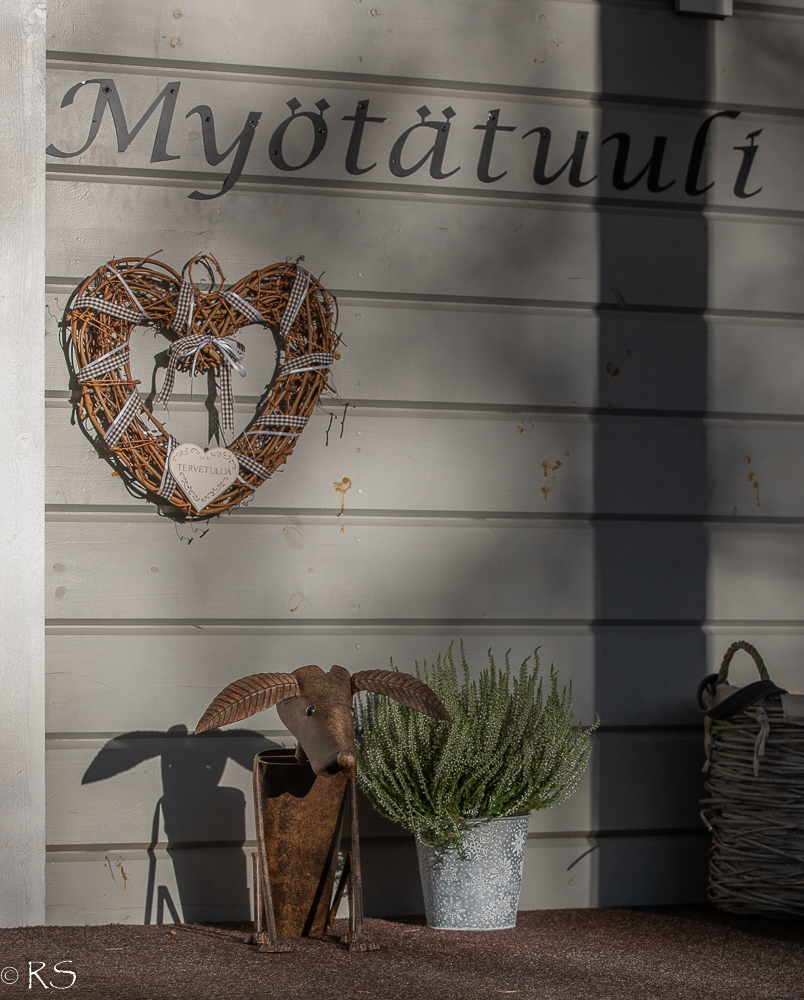 Mökillä siivoaminen on sikäli mukavaa, että se on rajallista. Pieni mökki on kaksistaan aika nopeasti puunattu. Niinpä iltapäivän puolella siirryimme ulos: terassit ja rantasauna saivat painepusurikuurauksen. Kyllä kelpasi saunoa kun ämpäritkin hohtivat puhtaina. Ja kaiken aikaa sää suosi: oli pilvessä, liki sumussa. Tiesimme, että tunturissa olisi tuhnua, joten emme menettäneet mitään, emme kaivanneet patikoimaan. Päinvastoin. Terassin pesu tuntui olevan oikea juttu. Ei uskoisi, kuinka täällä pohjoisessakin terassi saa ohuen katteen. Noh, nyt se kate on hävitetty. Ja Vinkku – meidän hieman ruosteinen vahtikoirakin – on taas tikissä.