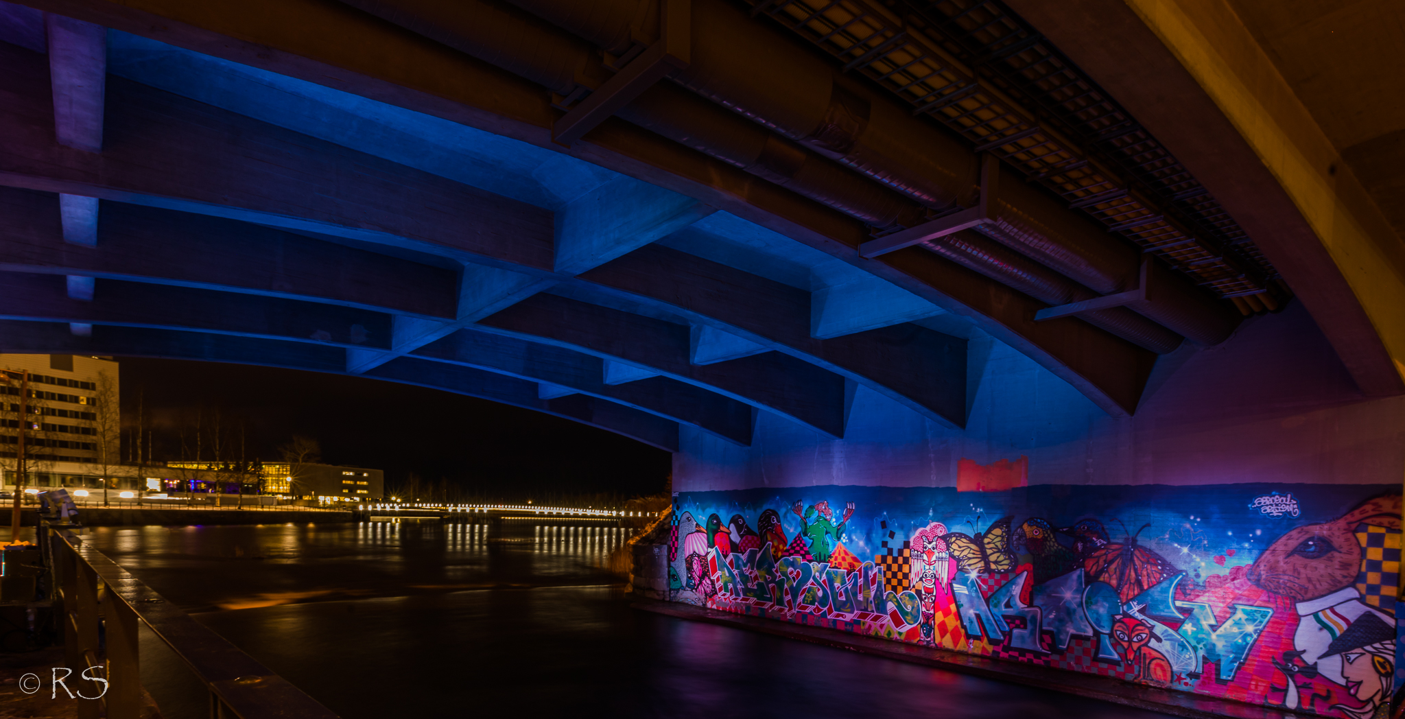 Tänä vuonna Lumo -valotaidetapahtuma Oulussa on – yllättäen – peruttu, mutta muutamia uusia valoteoksia kaupungissa kuitenkin on ihaltaviksi (tämä vielä reilun viikon). Yksi niistä on Pokkisen sillan alla oleva yliopiston ja ammattikorkean opiskelijoiden harjoitustyö: Sillan salaisuus.