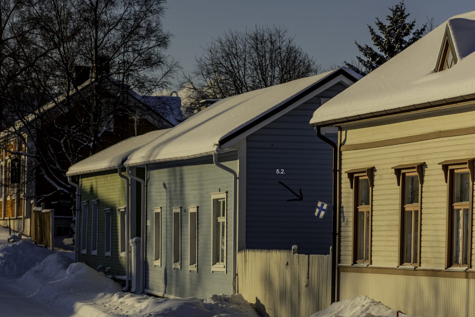 Pikisaarentie EI ole Porvoossa, mutta vanhaa puutaloidylliä siellä kuitenkin on… ja Suomen lippu. Runebergiläistä enemmän kuin Fredrikan ”kaapintyhjennyskakkuset”. (sanoo kettu happamista …) Mutta en vaan viitsinyt leipoa, ja yhdet kaupan ruunegreenit on jo ostettukin).