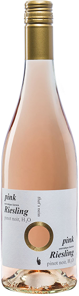 Keskellä on perinteiset punaviiniroseet Zenato ja Villa Wolf, jotka löytyvät myös Alkon hyllyiltä ja ne on testattu ja hyviksi havaittu, varsinkin Zenato, mutta oikeassa reunassa on yksi näitä uusia pinkkiriesling-viinejä, huom. H2O -merkintä.