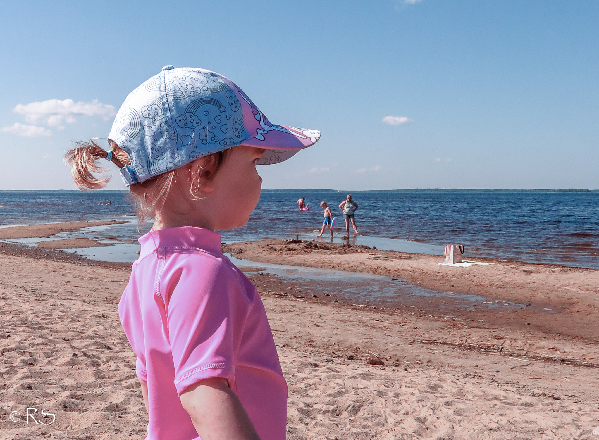 Nallikarissa oli jo paljon muita ennen meitä, – mikseipä! Mutta mahduimme vielä ihan rantaviivan viereen romppeinemme. ”Mummi, tuu kahlaamaan!” Pieni tovi kului, että poika ilmoitti olevan liian kylmää ja ”liikaa roskia” vedessä, eikä siis halua uida kauemmas, kahlailla vain, mutta se tovi kesti hyvin lyhyen aikaa.