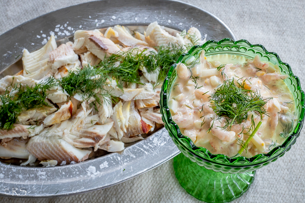 (Oulun Kauppahallista ”pyydettyä”) siikaa savustettuna ja sen ohessa katkarapusoosi tai salsa tai millä nimellä kukin tätä kehitelmääni haluaakaan nimittää…