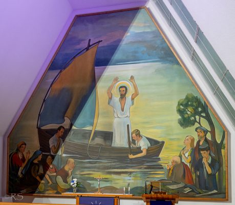 Sen tilalle valmistuneessa uudessa kirkossa on alttaritauluna taiteilija Eero Nelimarkan maalaus, jonka aihe on Markuksen evankeliumin neljännestä luvusta Jeesus opettaa veneestä. Lainaanpa tähän suoraan omaan tekstiäni:
