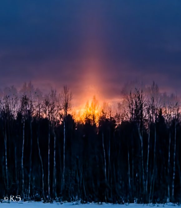Kotimatkalla pyörähdin vielä Rajahaudan kautta! Taivaan tulet, vai metsäpalo, haloilmiö?