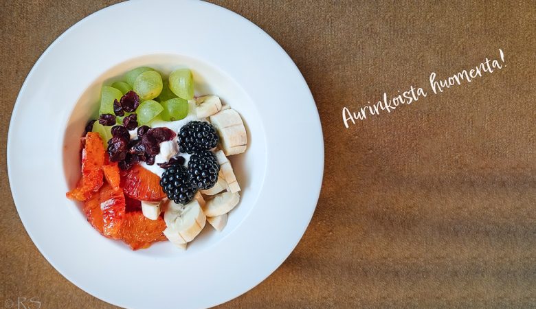 Tänään kun ulkona on lunta, kun somessa kaikissa kuvissa on lunta, kun sanomalehdissä on lunta ja kun sääennusteissa on vielä lisää lunta, minä tein aamiaiseksi puuron, otin kuvan siitä, nautin ajattelematta lunta ja päätin, että tänään en laita postaukseen yhtään lumikuvaa, joita tuli kyllä otettua, vaan laitan blogiini kuvan minun hedelmä-jukurttipuurostani. Se on paljon piristävämpi kuin märät tiet, vetiset hanget, harmaa taivas.