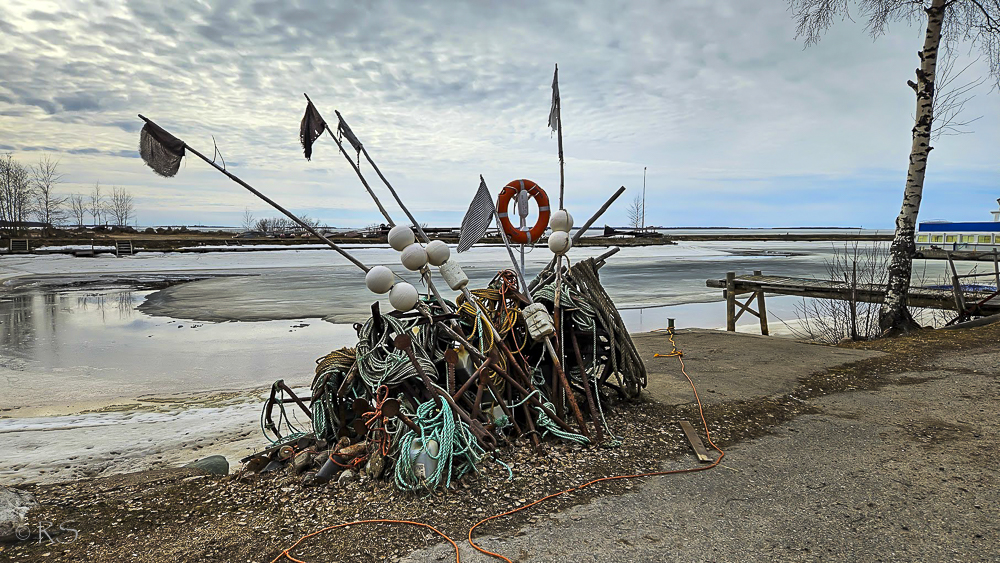 Kellon kalasatamassa odottava tunnelma. Ehkä vähän apaattinenkin. Toisaalta valoa ja lämpöasteitakin jo niin paljon, että lupauksia toiminnan alkamisesta, liikenteestä, kulkijoista, kävijöistä, moottoriveneiden äänistä ja kalasavustamon tuoksusta oli jossain jäisillä rannoilla ja kalamajojen nurkissa. Ihan pian on niiden kaikkien aika.