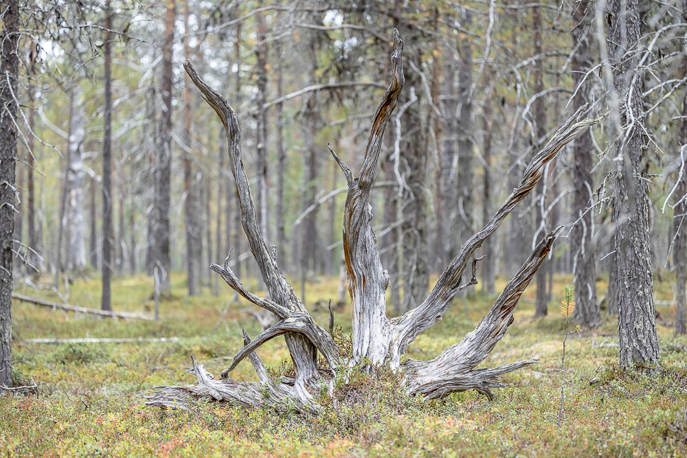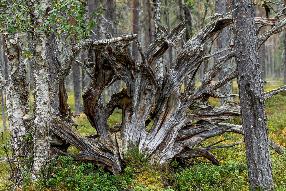 Tuulenkaatojen vanhoja kelottuneita kantoja kuvailin myös. Niistä ei taida kalenterikuviin olla, mutta voisi niistä jonkun kollaasin tehdä.