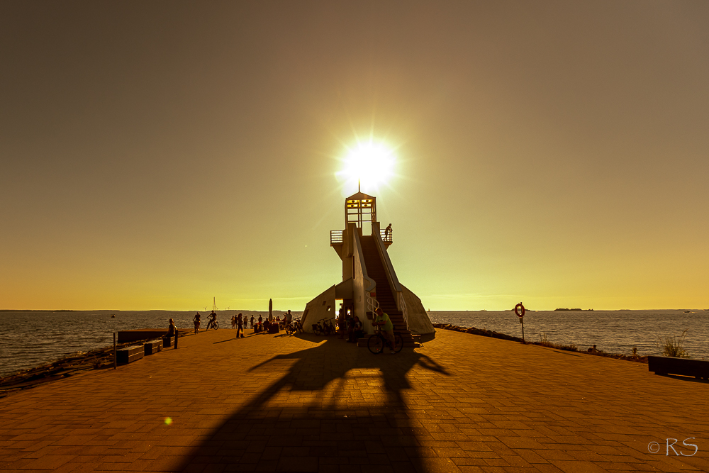 Tänään kun illansuussa jäimme kaksistaan piazzallemme, tuuli oli edelleen leppeä ja sää helli, päätimme lähteä vielä nauttimaan kesäillasta kaupungissa: lähdettiin pyörillä Nallikariin oululaisittain ”yhille”. Nallikarin kuvauksellisen ja kuvatun majakan, joka ei ole majakka, juurelle on avattu baari: Bootti. Sijainti drinksubaarille on ehkä Oulun paras. Matkalla jo ajattelin ”– kerran kesässä oikea Margarita”. No, eihän siellä mitään mansikkadrinkkiä saanutkaan. Valikoimassa on lähinnä olutta, siideriä, lonkeroa, skumppaa ja noita kaikkia joko pullosta tai muovimukista. Oli siis luovuttava toiveesta, mutta kyllä lokaatio ja kesäilta hyvittivät. Kuohuva (Sartori rose) oli ihan hyvä.