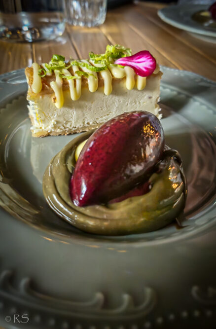 Eräänä kesäiltana Alfred muisteli metsäreissuja, joissa siniset sormet ja lakritsipiiput kuuluivat asiaan. Tässä jälkiruoassa nuo maut yhdistyvät uudella tavalla: lime-vaniljajäädykettä kerrostettuna mantelimarenki- keksien väliin, kuin nostalginen Puffet-jäätelö. Vierellä mustikkasorbettia ja lakritsikreemiä – tuttuja makuja uusissa vaatteissa. Annos, jossa metsä kohtaa makean mielikuvituksen.