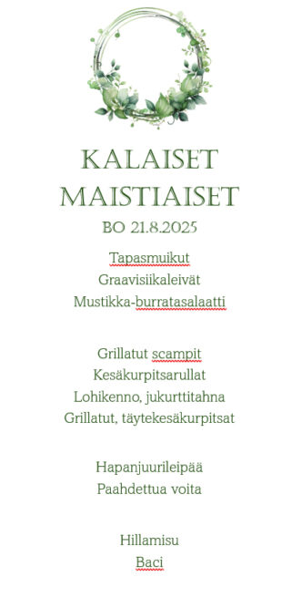 Meillä oli eilen ruokajuhla: Kalaiset maistiaiset! Siis viinikerho maistelemassa viinejä ja syömässä illallista, jonka teemaksi olin valinnut kalan. Palannen näihin vielä jossain vaiheessa.