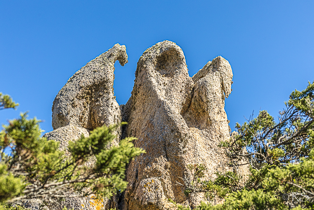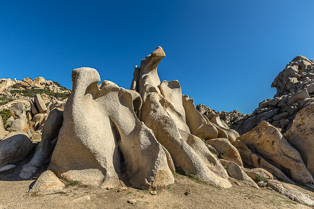 Kapean kannaksen yli kohti Capo Testan niemimaata. Siellä aika ainutlaatuisia kalliomuodostelmia. Merkillisiä. Monenmoisia hahmoja löytyi noista luonnon muodostamista kalliomuodostelmista… [Kuvasivustolle sitten paljon niitä tulkittavaksi… 😉 ]