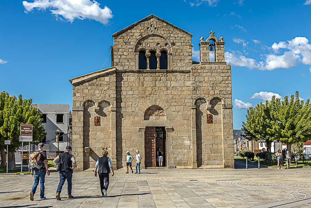 Meillä oli parin tunnin ”lounastauko” Olbiassa, jossa kävimme ihan ensimmäiseksi katsomassa pienen basilikan ~San Simplicio 1000-luvulta. Tämä oli kuulemma tämän reissun ainoa kirkko, jossa käydään. Ihan poikkeuksellista meidän reissuillamme tällainen, mutta ei haittaa. Nyt patikointi ja rannoilla kulkeminen menee kulttuurinähtävyyksien edelle.