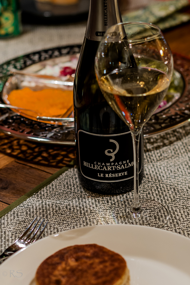 Hain aamupäivällä Chez flon paistamia blinejä, ja sitten samalla reissulla tykötarpeita Kauppahallista (kälyltä) ja vielä Alkosta Champagnea. Juhla kun haluttiin, niin satsasin samppanjaan. Billecartissa oli voimaa ja makua jopa poromoussen pariksi.