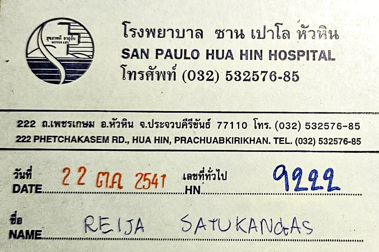 Meidän perheen ainoalla ja tod. näk. viimeisellä Thaimaan matkalla reilut 20 vuotta sitten, minä sairastin kahdesta lomaviikosta toisen jotain jota epäiltiin salmonellaksi tai yersinaksi, mutta ei se sitten ollut kumpaakaan. En kuitenkaan ikinä unohda sitä, kun kukkamekko hulmuten istuin riksan kyydissä matkalla Hua Hinin sairaalaan ja takaisin. Siellä oli hienossa aulassa erikseen jonot turisteille ja paikallisille, ja jo odotusaulassa ennen kuin minulta kysyttiin nimeäkään, minut vietiin vaa´alle: ”Tarkistetaan vain, ettet ole kuivunut”. Miten sen voi punnitsemalla todeta, jollei ole verrokkilukua? – No any way, sain droppeja, jotka auttoivat – vähän – ja monen päivän levon jälkeen uskalsin sentään lähteä lennolle kotiin.