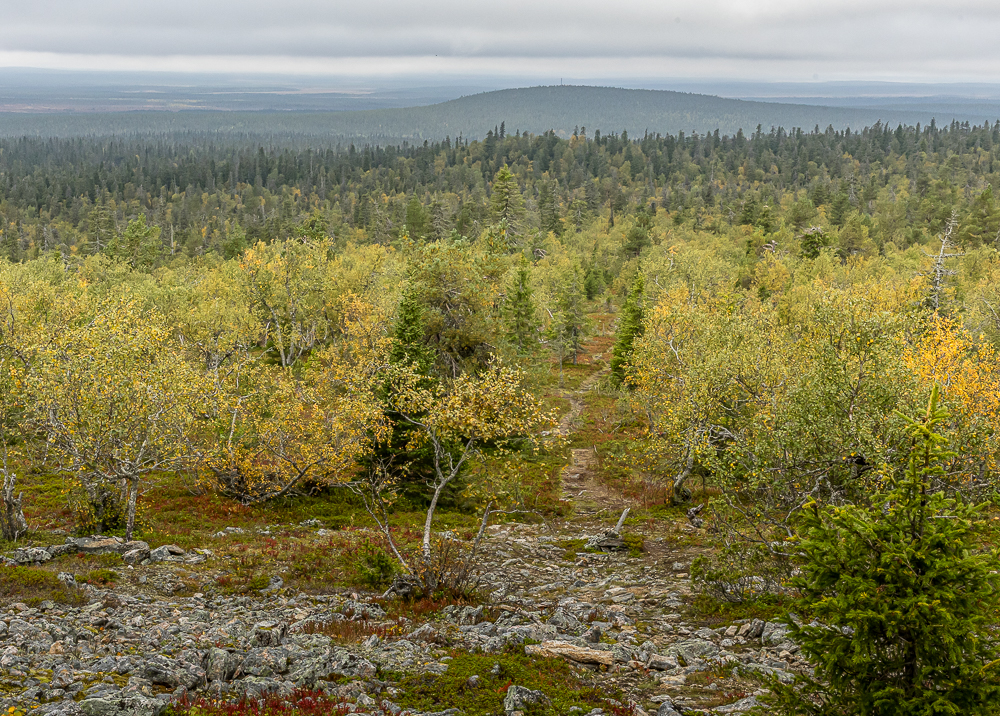 Pitkästä aikaa Iso Tankavaaran (Jorpulipää) huiputus. Kuinka hienoa siellä onkaan. 360 astetta tunturimaisemaa, ruskaisia rinteitä, sinivihreitä tuntureita ja vaaroja, matkalla sammaleisia polkuja ja viimeinen puolikilometriä kaunista, vaikeakulkuista kivirakkaa, matkalla huipulle, siinä välillä Tankasuo, jonka yli ei enää päässytkään (pitkospuut lahonneet), vaan oli kierrettävä suon reunoilta noin kilometrin matka kohti tunturin huippua. Ruskaa maassa ja ruskaa puissa. Tyventä ja sateentonta (nousu). Palatessa jo tihuutti, joten vaikka Koiranjuomalammella olisi ollut hyvä hetki huilata, jatkoimme pysähtymättä.