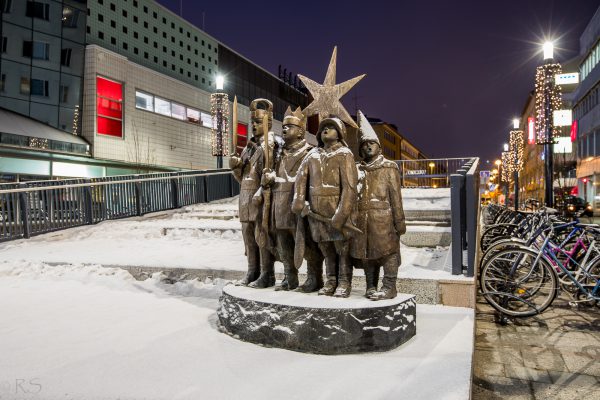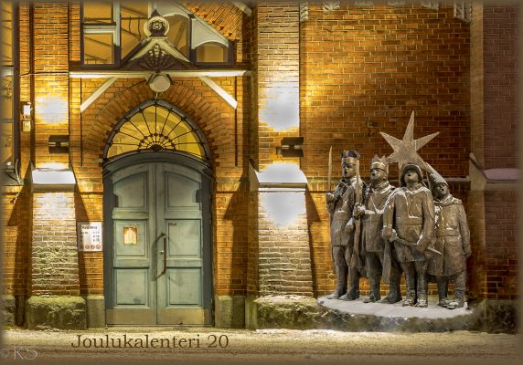 No mutta, minä (pöhkö) vielä kirjoitin FB-postaukseen, että ”Tiernapojat ovat ihan itse valinneet arvoisensa paikan”. Noh, tästäkös sitten jotkut saivat hiilloksen uudelleen liekkeihin; Oulussa kun tämän (ja niin monen muunkin, aikanaan myös Toripolliisin,) patsaan paikasta ja ulkonäöstä on käyty valtaisa yleisönosasto-, some-, sanomalehti- ja valtuusto- yms. keskustelu. Ja nyt sitten tuon alla, joulukalenterikuvassa, olevan komposiittikuvani jäljessä FB-ryhmässä on kymmenittäin puolesta ja vastaan kommentteja. Liittyen nimenomaan Tiernapoikien paikkaan, ei kuvaan tai jouluntoivotukseen. No minähän niin kovasti tänne blogiinkin toivon kommentteja ja vuorovaikutusta, niin eikö nyt pitäisi olla vain tyytyväinen, kun keskustellaan? 😀
