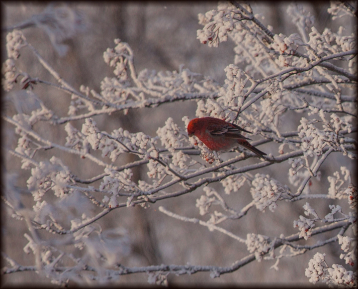 Kahta kuormaa, marjoja ja lunta, pihlajat ei kanna —