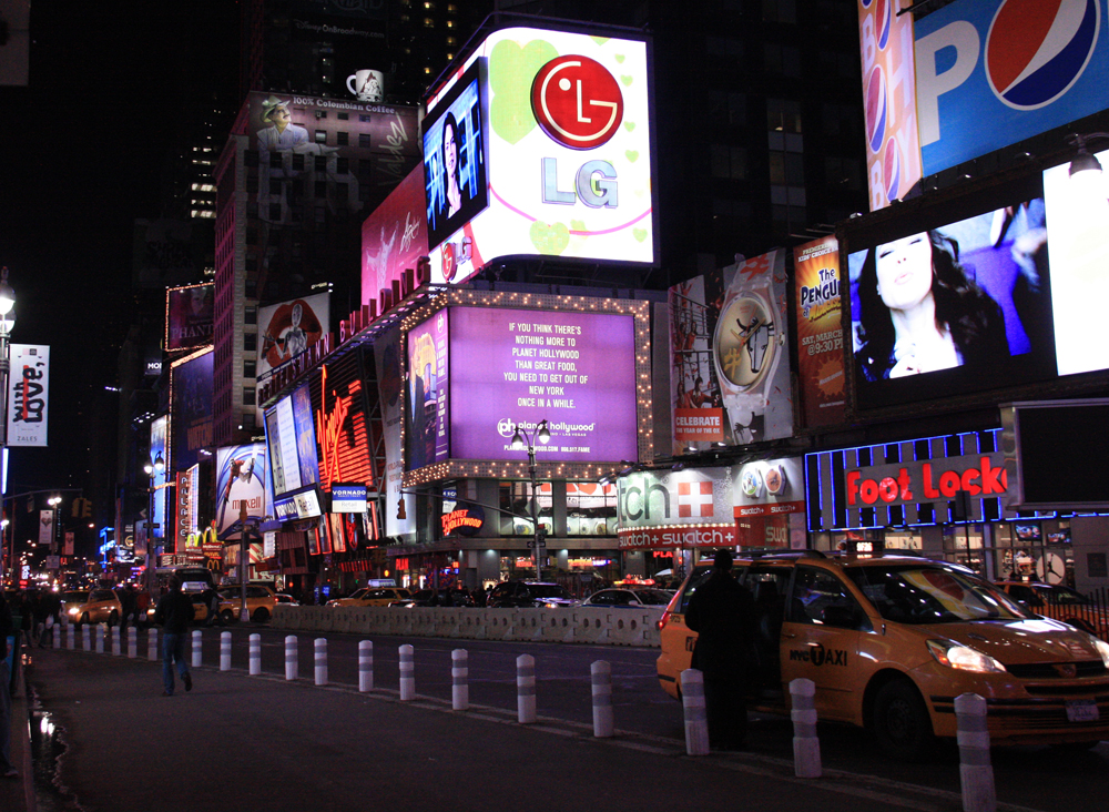Kävelimme katsomaan Times Squaren valomerta: se on liki hengästyttävä. Koetin kuvatakin. Vahinko ettei kuvien liitttäminen tähän ainakaan vielä onnistu. Lewis Store pysäytti: samoin nyt löytynyt Hard Rock Cafe, Times Squaren liike ei erikoisuudella mässsäillyt, mutta T-paidat löytyivät. Samoin kuin reitti hotellille … Nyt nukkumaan ..